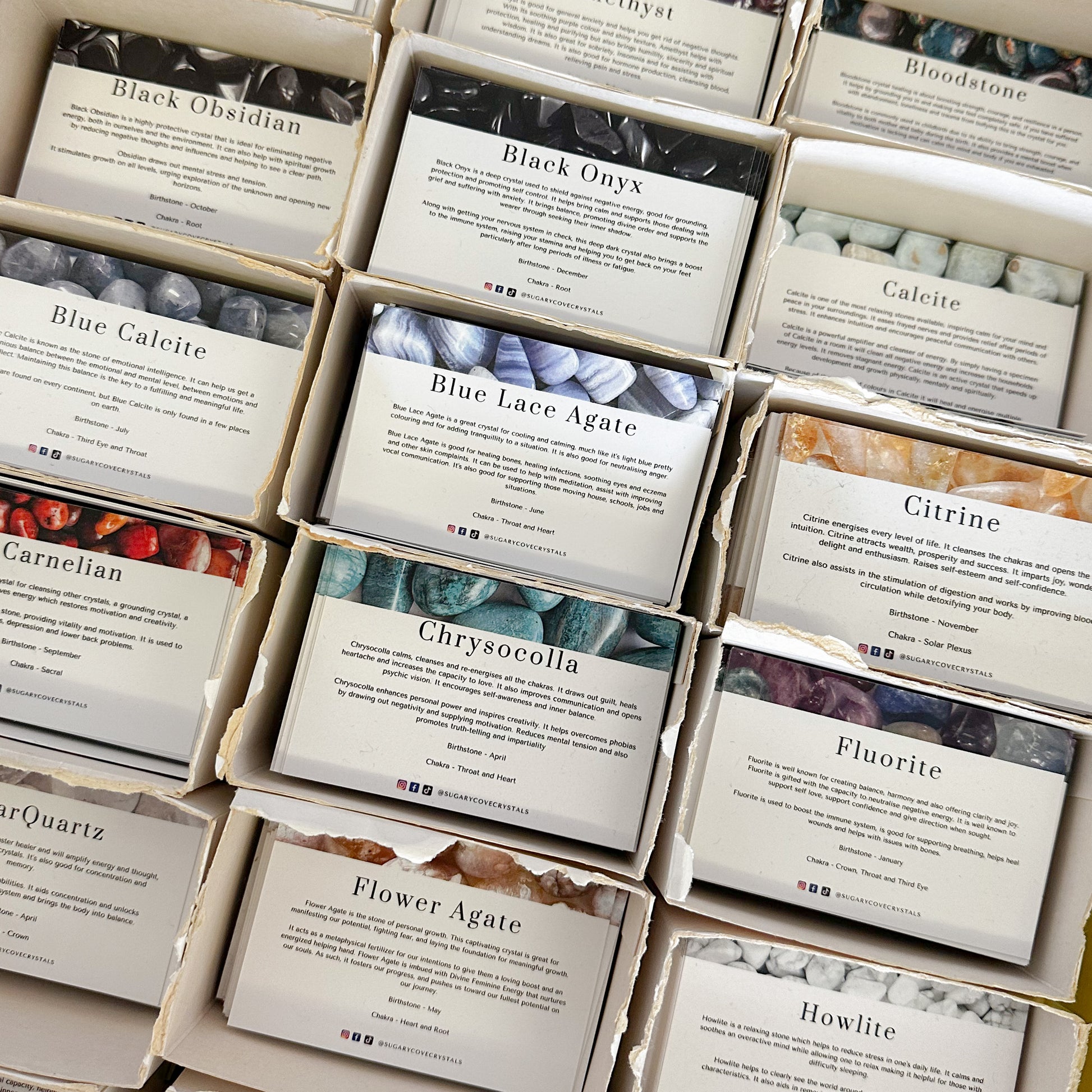 41 Crystal information Cards created by Sugary Cove Crystals. Details of properties on 41 different crystals, one of each card. Gives you the chakra connected to a crystal and physical / mental attributes. A set makes a nice gift or just for information purposes for a beginner or a crystal shop.